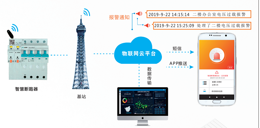 金特萊JTL-ZH智慧斷路器基于物聯網技術與智慧用電監管技術相結合的新型斷路器,通過物聯網技術將設備的壓、電流、溫度、漏電、功率等監測數據傳輸至大數據管理平臺,并可通過手機APPPC端監管云平臺進行遠程控制,實現用電設備的智能管理