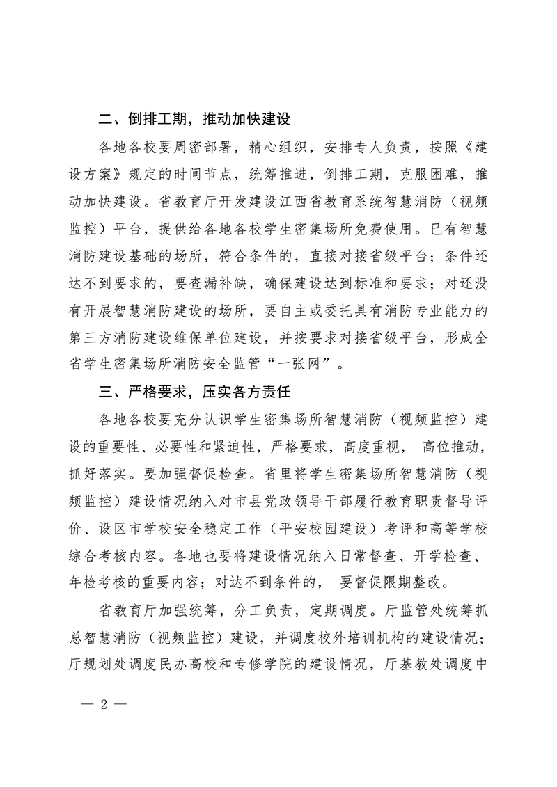為了確保智慧消防建設工作的順利進行,江西省教育廳進行了明確的分工,各相關處室將負責不同類型教育機構的建設情況調度。同時,各地各校也被要求明確牽頭部門和責任人,形成工作合力,共同推進智慧消防建設。