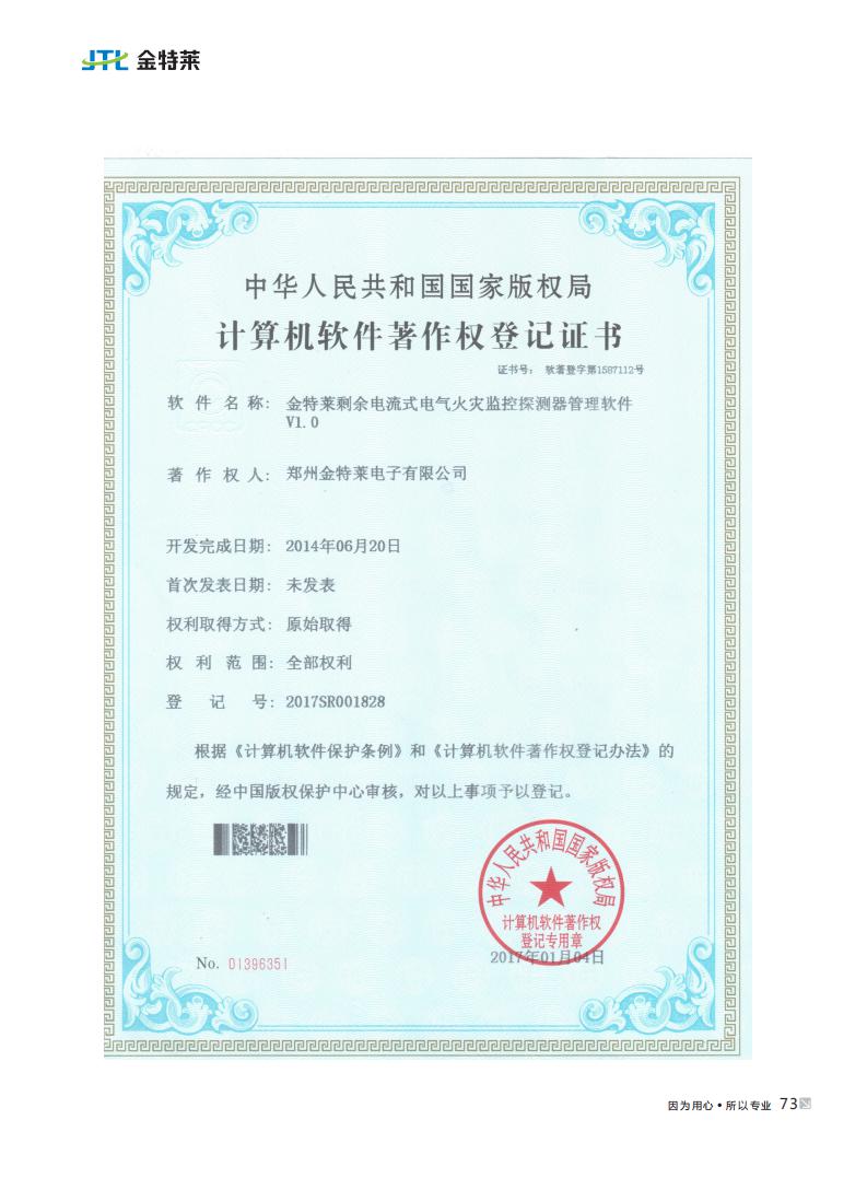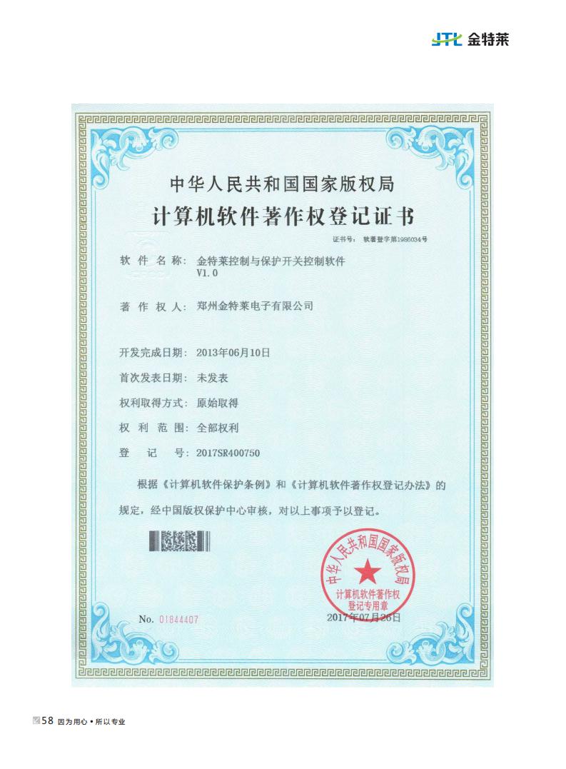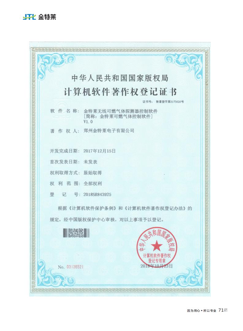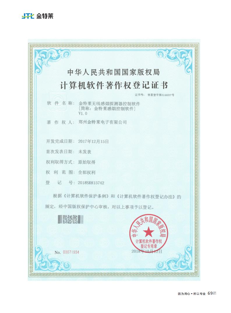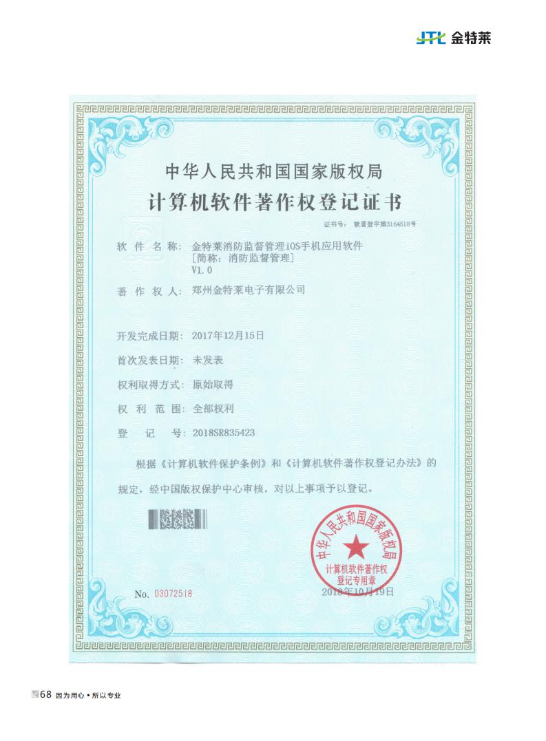 ? ? ?? 鄭州金特萊的智慧用電和智慧消費產品都獲得了計算機軟件著作權登記證書。