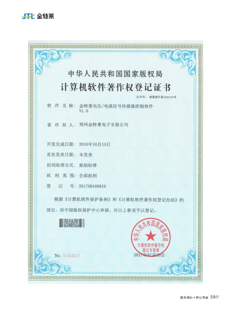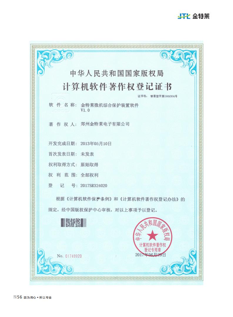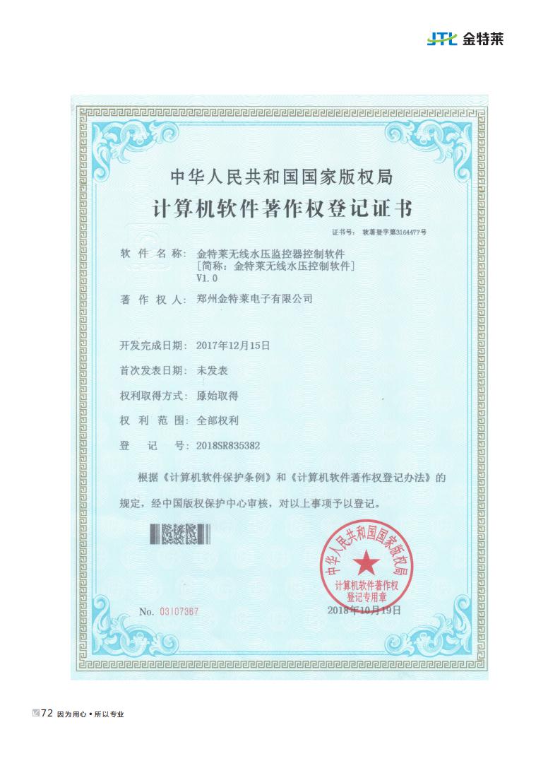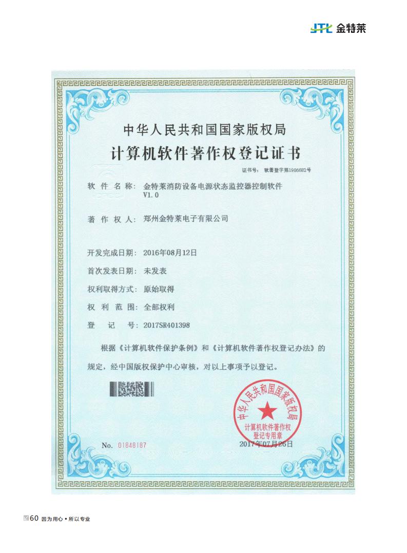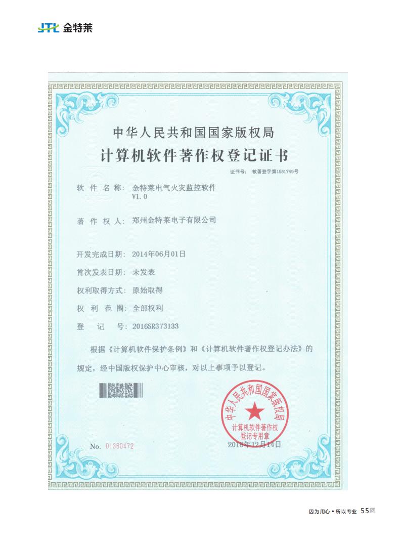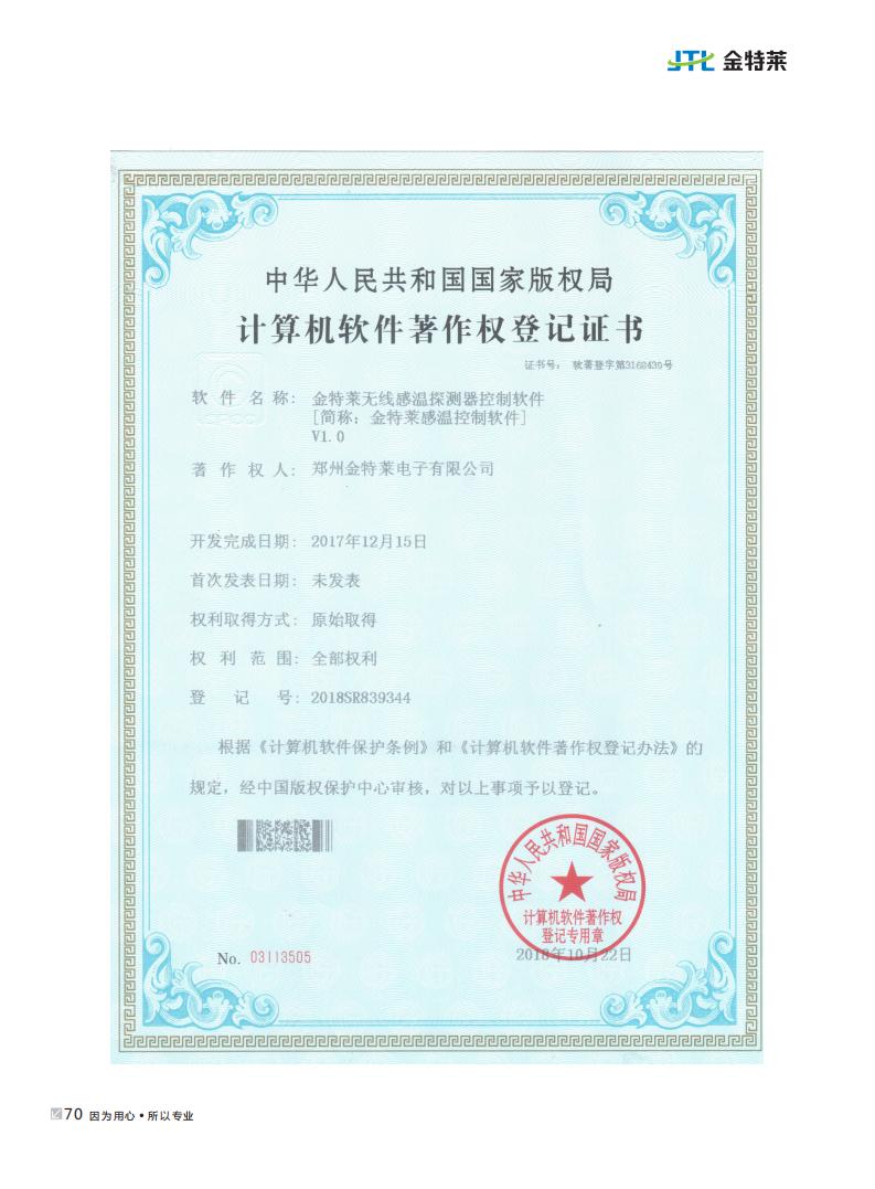 ? ? ?? 鄭州金特萊的智慧用電和智慧消費產品都獲得了計算機軟件著作權登記證書。
