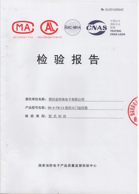 鄭州金特萊電子有限公司防火門監控器立柜檢驗報告證書
